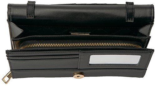Cross body in chevron quilting with metal feature on flap.