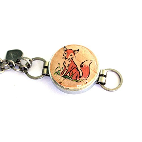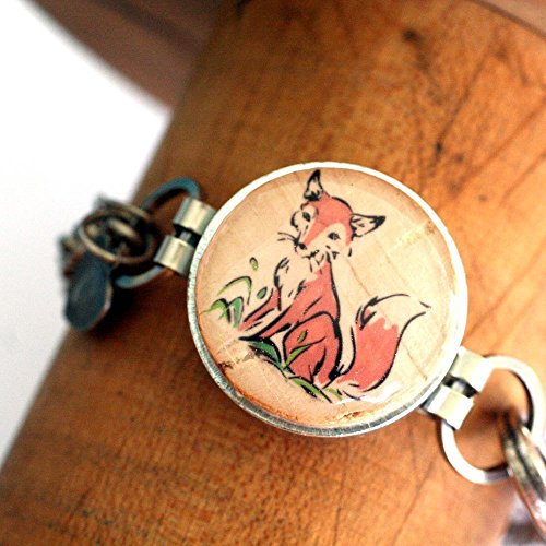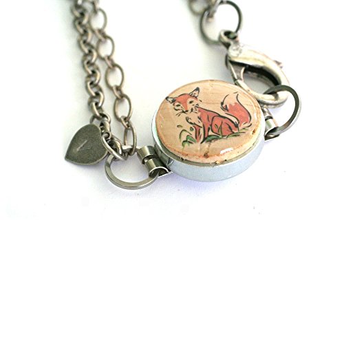 -. Title : Adorable FOX Double Chain Bracelet - Recycled Steel and Wine Cork - Choice of Length and Stamped Initial