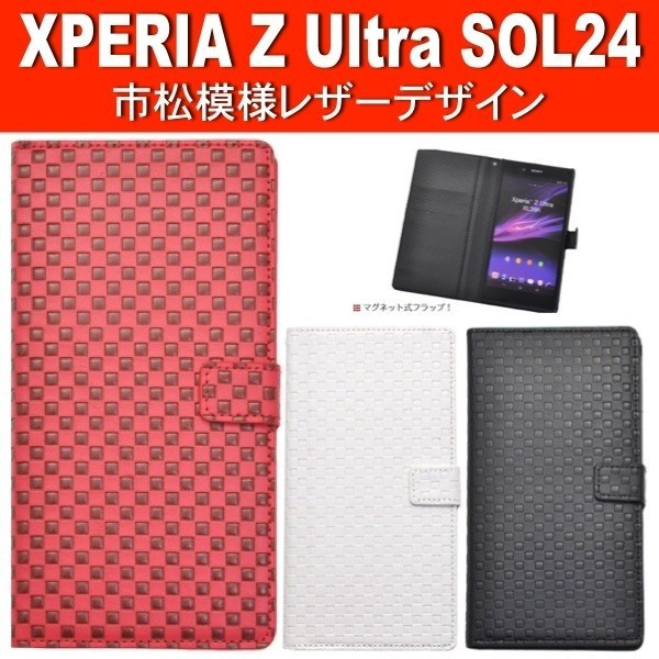 市松模様レザーデザインのXperia Z Ultra SOL24用スタンドケースポーチ