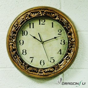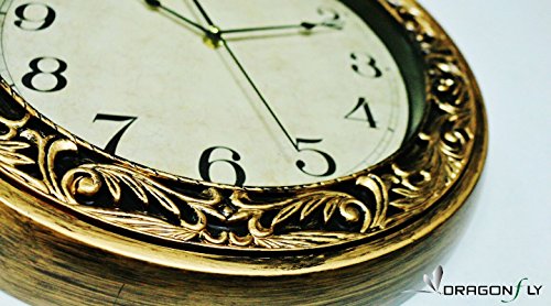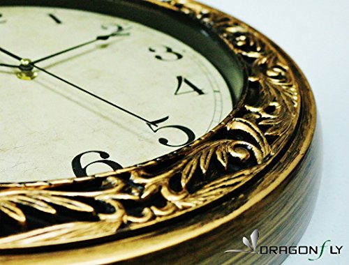 -. Title : Athena Gold Laurel Simulated Metal Wall Clock, Quartz, ABS Glass Front Cover, Antiquity European Style, Brushed Gold & Black Paint Surface Texture, Frame 16" in Daimeter, Gold Lace Design