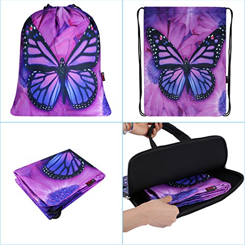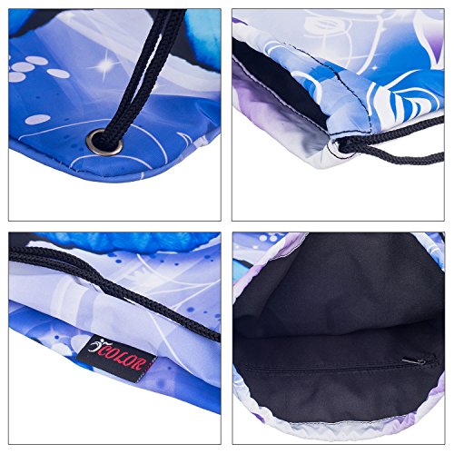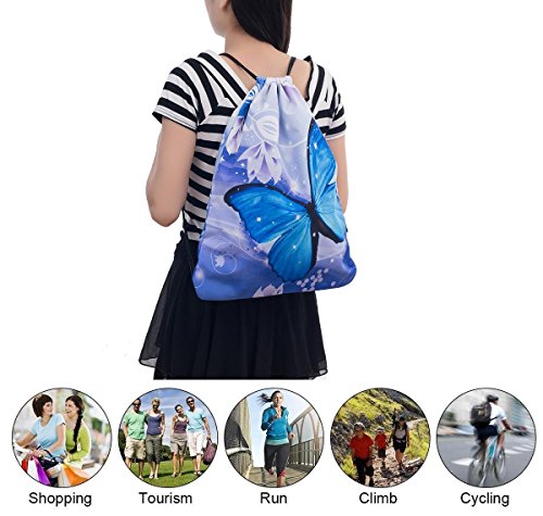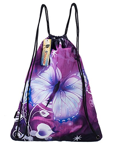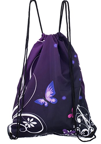 ICOLOR Sackpack Drawstring Bags Polyester Backpack Outdoor Sports Gym Bag Yoga Runner Daypack Team Training Gymsack (Butterfly)