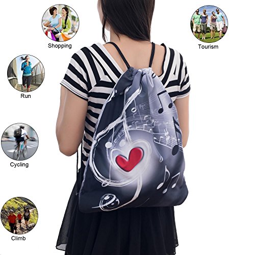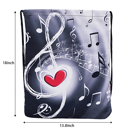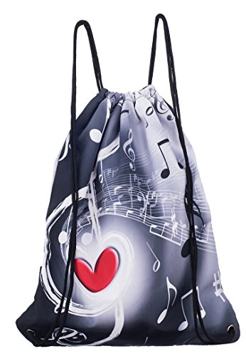 iColor Sackpack,Drawstring Backpacks,Stylish Multipurpose Girls Nylon Drawstring Bags Gym Bags ,Teen Dance Bag, Lightweight Gym Bag for Women Cycling Hiking,Team Training Gymsack (Music & Red Heart)