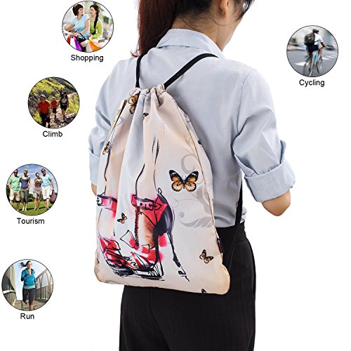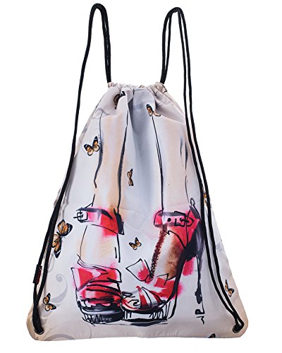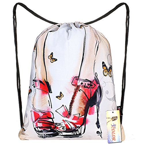 ICOLOR Sackpack Dance Bag Team Issue Sackpack Drawstring Backpack Gym bag Gymsack for Women Men Girls (High-heeled shoes)