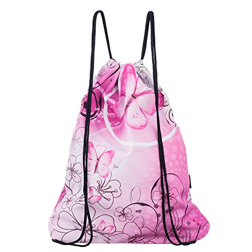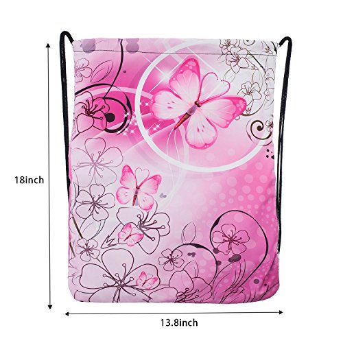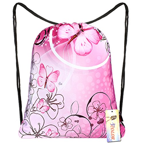 iColor Sackpack,Drawstring Backpacks,Stylish Multipurpose Girls Nylon Drawstring Bags Gym Bags ,Teen Dance Bag, Lightweight Gym Bag for Women Cycling Hiking,Team Training Gymsack (Pink Butterfly)