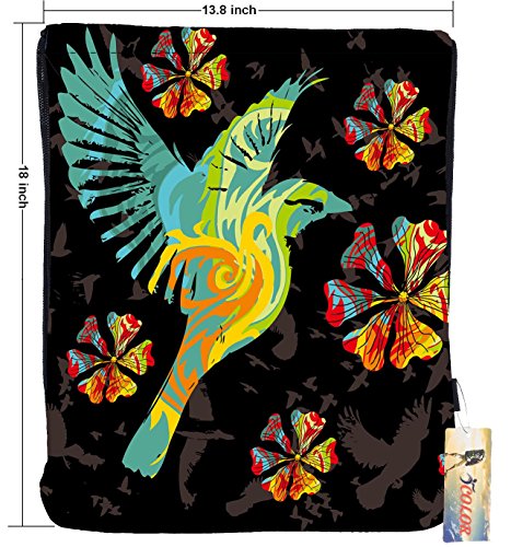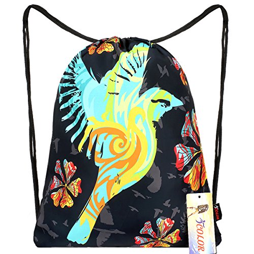 iCOLOR Sackpack Drawstring Backpack Sport Gym Bag Yoga Runner Daypack (Birds)