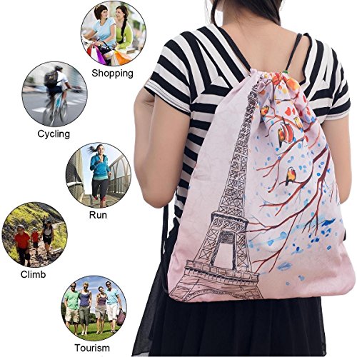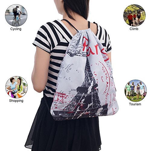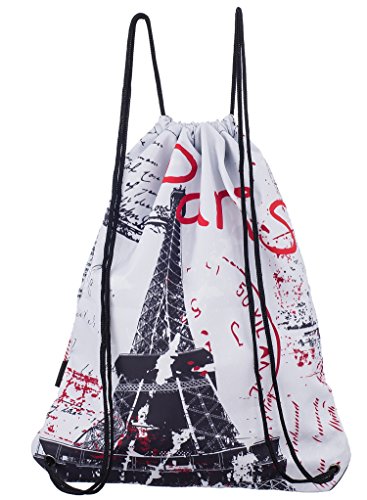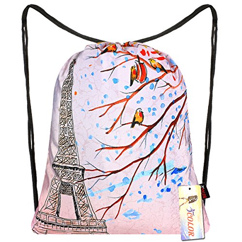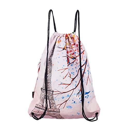 iColor Sackpack,Drawstring Backpacks,Stylish Multipurpose Girls Nylon Drawstring Bags Gym Bags ,Teen Dance Bag, Lightweight Gym Bag for Women Cycling Hiking,Team Training Gymsack (Paris)