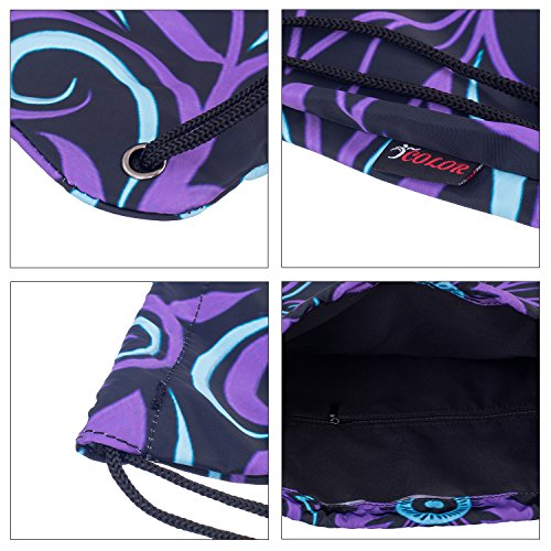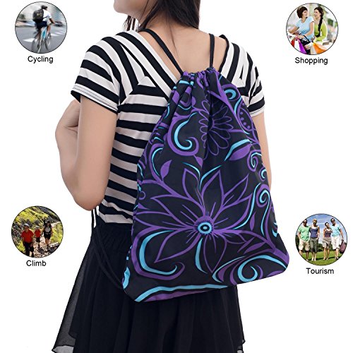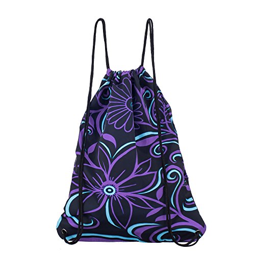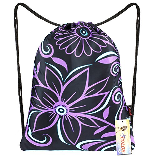 iColor Sackpack,Drawstring Backpacks,Stylish Multipurpose Girls Nylon Drawstring Bags Gym Bags ,Teen Dance Bag, Lightweight Gym Bag for Women Cycling Hiking,Team Training Gymsack (Purple Flower)
