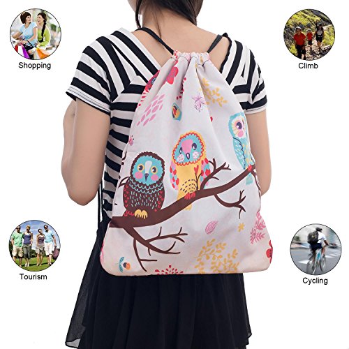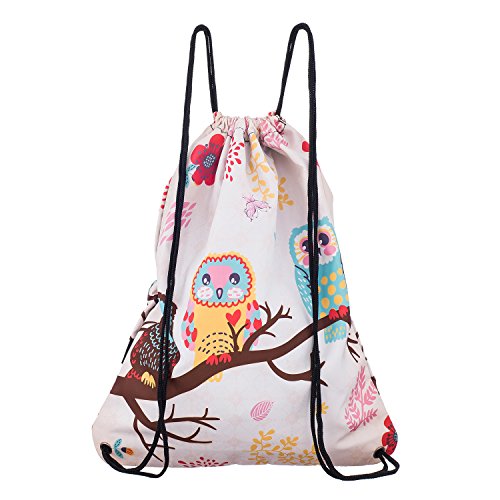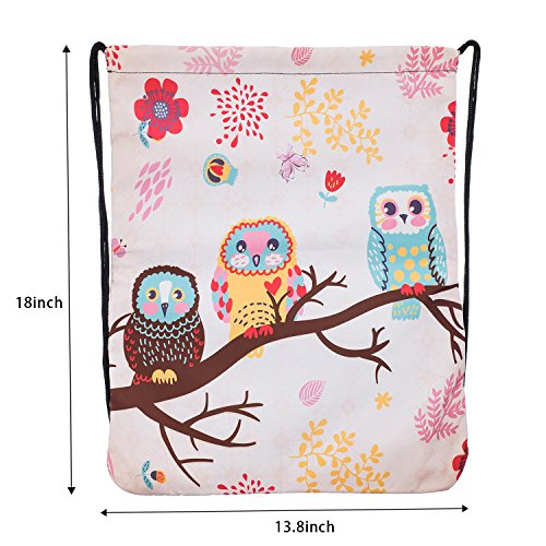 iColor Sackpack,Drawstring Backpacks,Stylish Multipurpose Girls Nylon Drawstring Bags Gym Bags ,Teen Dance Bag, Lightweight Gym Bag for Women Cycling Hiking,Team Training Gymsack (Three Owl)