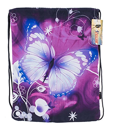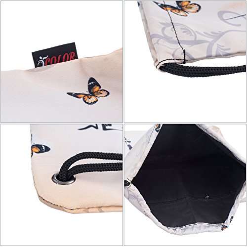 iColor Sackpack,Drawstring Backpacks,Stylish Multipurpose Girls Nylon Drawstring Bags Gym Bags ,Teen Dance Bag, Lightweight Gym Bag for Women Cycling Hiking,Team Training Gymsack (Butterfly & Flower)