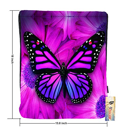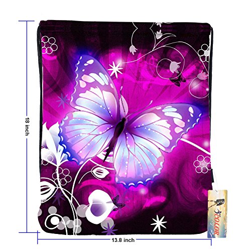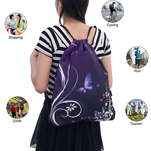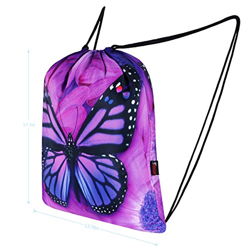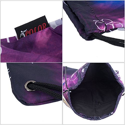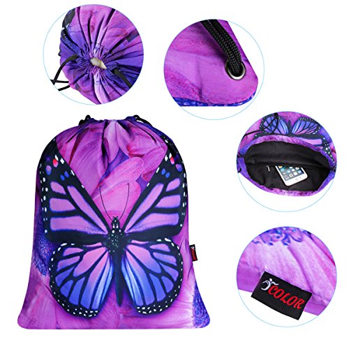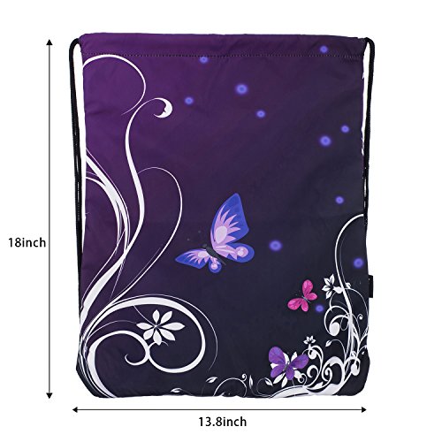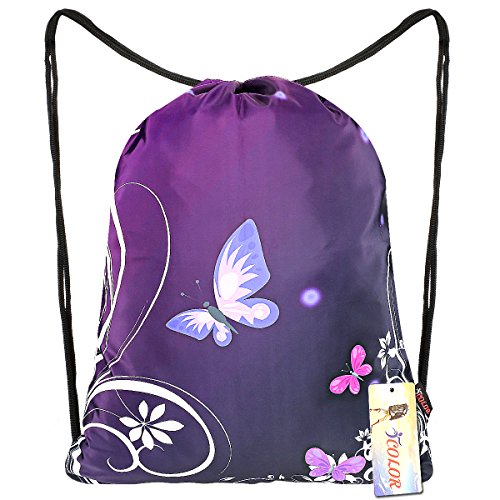 ICOLOR Sackpack Drawstring Bags Polyester Backpack Outdoor Sports Gym Bag Yoga Runner Daypack Team Training Gymsack(Purple Bfly)