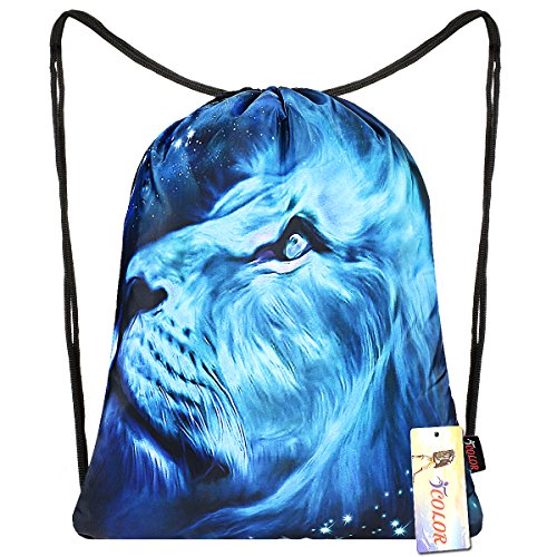 iColor Sackpack Drawstring Gym Bags Nylon Backpacks Teen Dance Bag for Women Girl Boy Yoga Runner Cycling Hiking Team Training Gymsack Daypack (Lion)