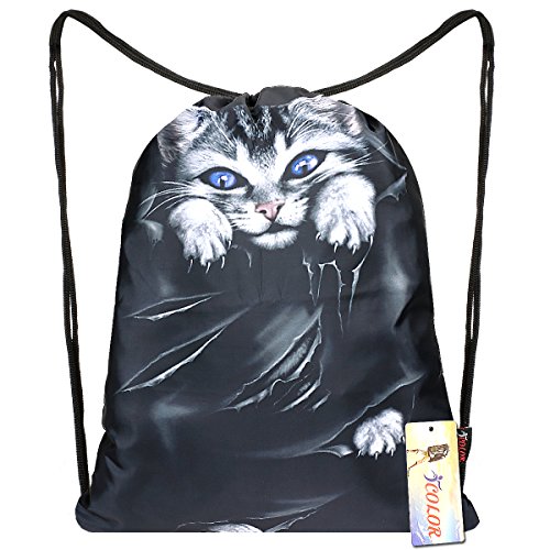 iColor Sackpack Drawstring Gym Bags Nylon Backpacks Teen Dance Bag for Women Girl Boy Yoga Runner Cycling Hiking Team Training Gymsack Daypack (Cute Kitten)