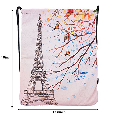 iColor Sport Sackpack,Drawstring Backpack,Stylish Multipurpose Girls Nylon Gym Bags,Teen Yoga Dance Bag,Lightweight Gym Bag for Women Cycling Hiking,Gymsack Travel Daypack 18" x 13.8" (Eiffel Tower)