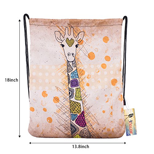 iColor Sport Sackpack,Drawstring Backpack,Stylish Multipurpose Girls Nylon Gym Bags,Teen Yoga Dance Bag,Lightweight Gym Bag for Women Cycling Hiking,Gymsack Travel Daypack 18" x 13.8" (Giraffe)