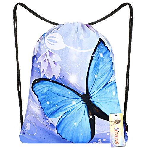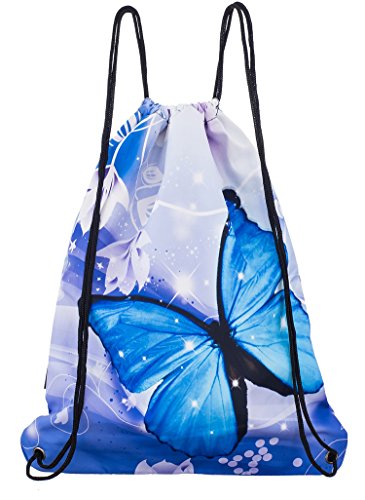 iColor Sackpack,Drawstring Backpacks,Stylish Multipurpose Girls Nylon Drawstring Bags Gym Bags ,Teen Dance Bag, Lightweight Gym Bag for Women Cycling Hiking,Team Training Gymsack (Blue Butterfly)