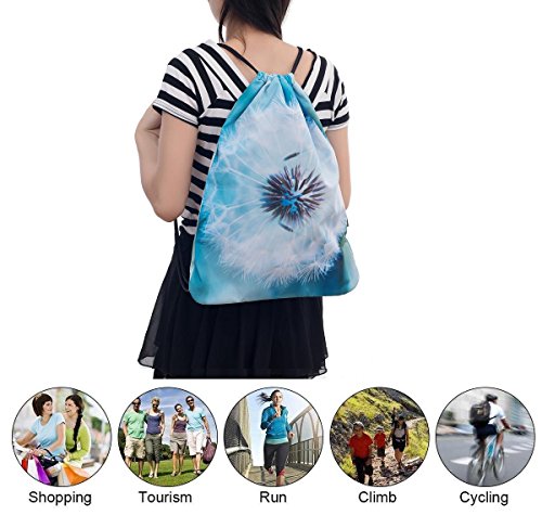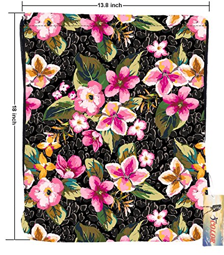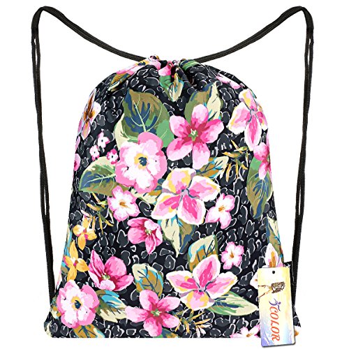 ICOLOR Sackpack Drawstring Bags Polyester Backpack Outdoor Sports Gym Bag Yoga Runner Daypack Team Training Gymsack (Flower)