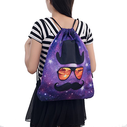iColor Sackpack Drawstring Backpacks Stylish Multipurpose Girls Nylon Drawstring Bags Gym Bags ,Teen Dance Bag, Lightweight Gym Bag for Women Cycling Hiking,Team Training Gymsack (Cat w/ Glasses)