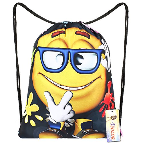 iColor Sackpack Drawstring Gym Bags Nylon Backpacks Teen Dance Bag for Women Girl Boy Yoga Runner Cycling Hiking Team Training Gymsack Daypack (Smiling Face)