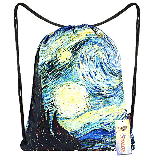 iColor Sport Sackpack,Drawstring Backpack,Stylish Multipurpose Girls Nylon Gym Bags,Teen Yoga Dance Bag,Lightweight Gym Bag for Women Cycling Hiking,Gymsack Travel Daypack 18" x 13.8" (Hurricane)