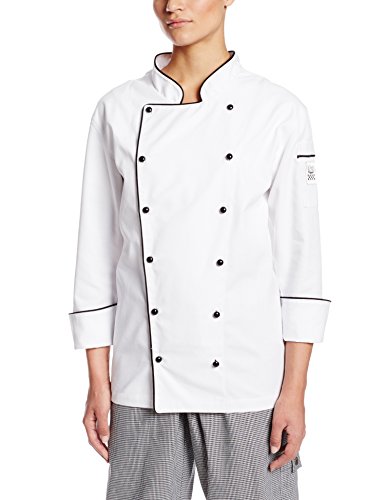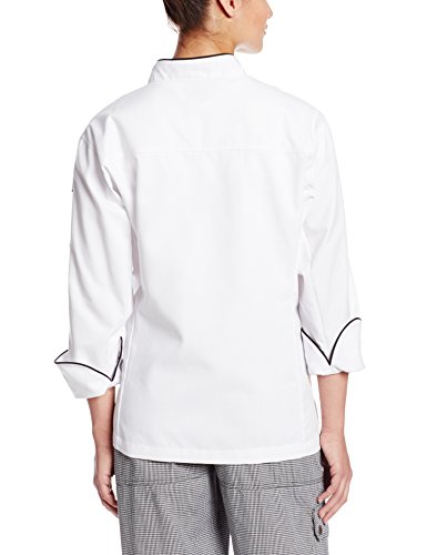 Chef Revival LJ044 Chef-tex Poly Cotton Ladies Brigade Jacket with Black Piping and Push Through Button, Medium, White