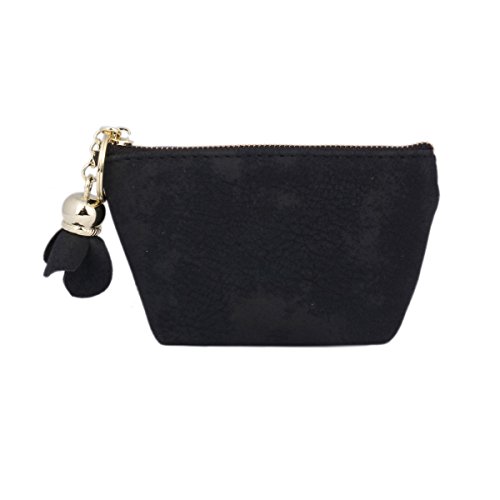 Product Description This wallet is made of faux leather, slippy polyester lining. The appearance of wallet looks like trapezoid. A flower pendant and key fob hung on the zipper. With roomy inside pouch you can easily hold coins , a few bills and dollars, small items and not bulky at all. Best gift for yourself and friends. Size of wallet: 14.5*3.7*7.5cm(5.7*1.45*2.95inches). 0