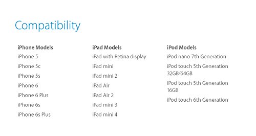 Compatible with iPhone 5, 5c, 5s, SE, iPhone6, iphone6 Plus, iPhone6s, iphone6s Plus, iPod Nano 7, iPod Touch 5, iPad 4, iPad5, iPad Pro, iPad Air 2, iPad Air, iPad mini3, iPad Mini2, iPad Mini Retina, iPad Mini4