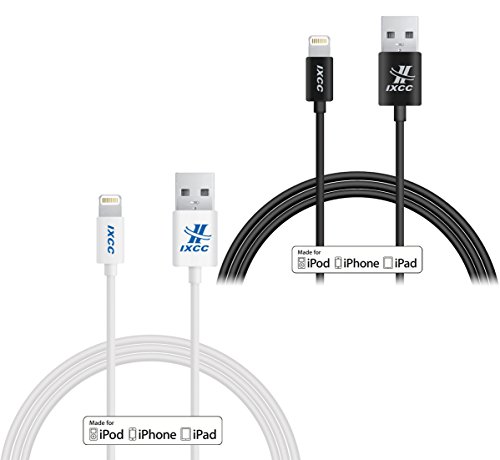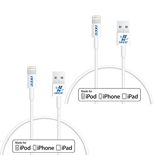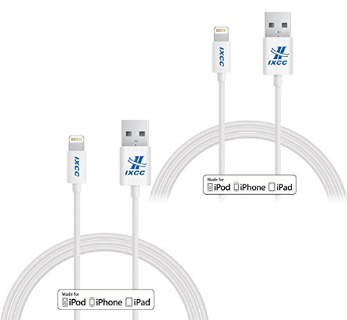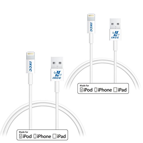 iXCC Element Series 3-Feet 8pin Lightning to USB Charge and Sync Cable for iPhone 5/6/6s/Plus/iPad Mini/Air/Pro - 2 Pieces - White (Apple MFi Certified)