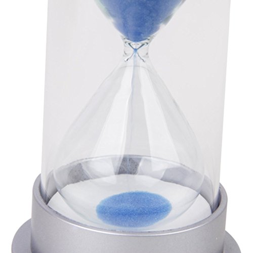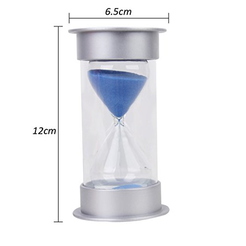 -. Brand : Generic -. Feature : Ideal for timing cooking, games, exercising and so on / Material: Plastic, glass and sand / Color: Silver + blue sand / Size (H x D): Approx. 12 x 6.5 cm -. ProductGroup : Kitchen -. ProductTypeName : KITCHEN -. Title : Glas Timer Hourglass Sandglass Sand Timer Home Decor