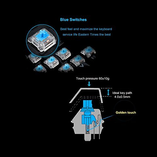Blue switch and golden touch, designed for longevity, responsiveness, and durability. With strong sense of rhythm and powerful clicking sound., you may feel super cool and hyper-reality gaming world.