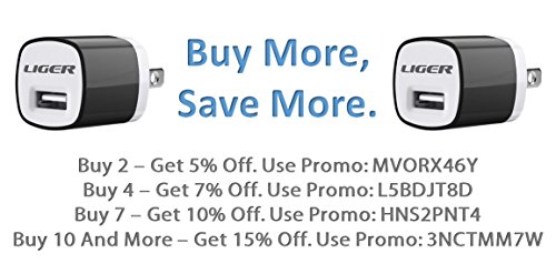 Wall Charger, Liger® Universal USB Wall Charger Made for Iphone 6 5 5s 5c 4S, Ipad 2 3 4, Ipad Mini, Ipod Touch, Ipod Nano, Samsung Galaxy S5 S4 S3 Note 2 3 And Most Android Phons (Black)