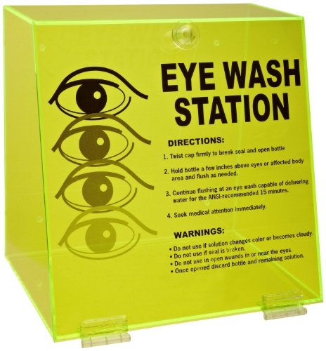 Brady PD997E 10" Height, 10-1/4" Width, 7" Depth, Acrylic, Black On Fluorescent Green Color Double Bottle Eye Wash Station