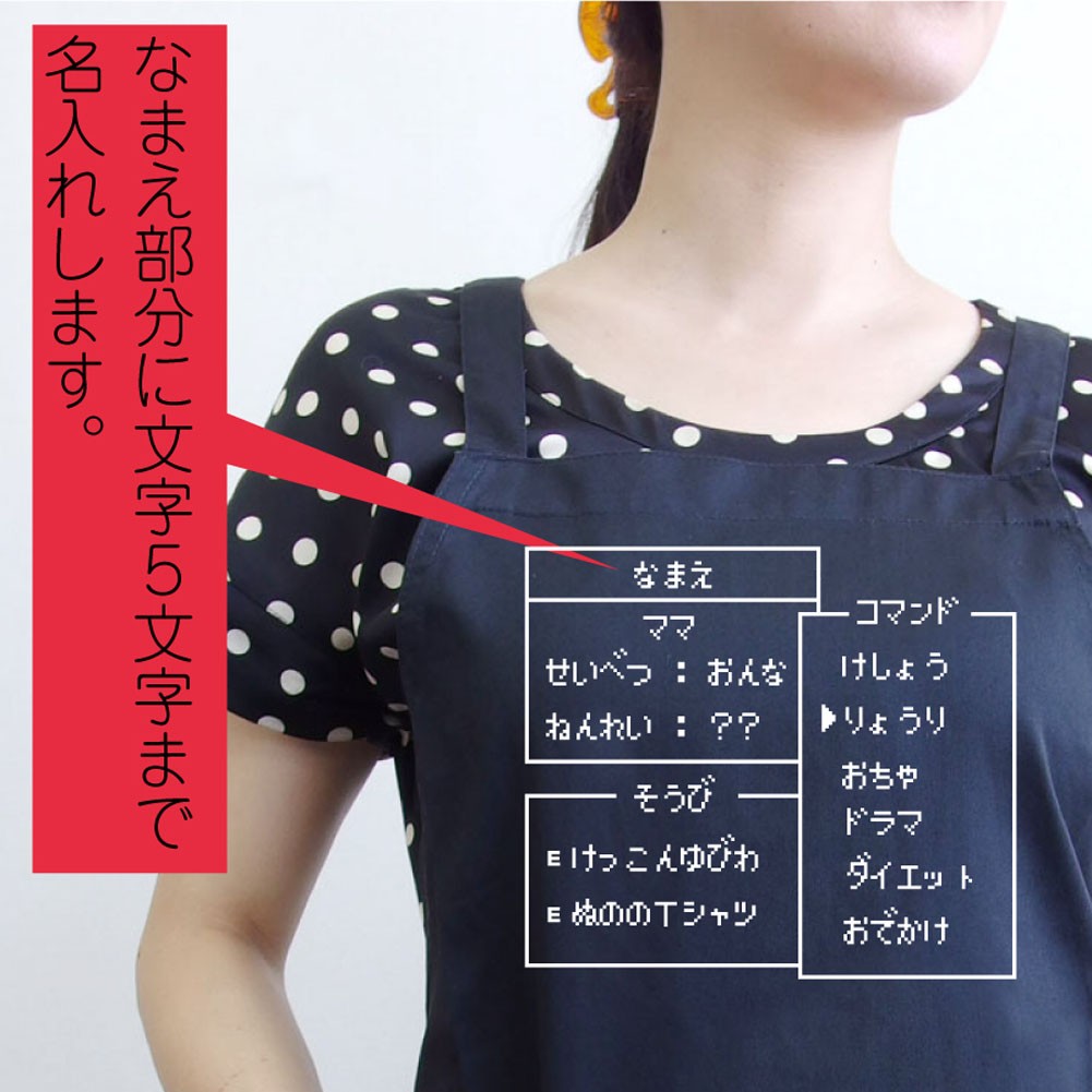 お母さんへの母の日プレゼントに!なまえ部分にお好きな5文字まで名入れできます!ご希望の名入れ文字はご注文ページを進んでいった備考欄に記入してください。エプロンはフリーサイズで紐を後ろで結んでサイズ調整できます。■ご注文時にご記入いただいた「名入れ希望文字」の、ご注文後の文字変更はできません。Mothersday0514