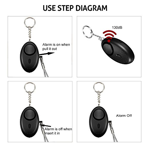 - HOW TO USE: When you meet with attacker, intruder or stalker, you can pull out the safe pin at the side of the personal alarm. Then the alarm will burst out an 130dB alarm sound. You just need to insert the safe pin back to stop the alarm