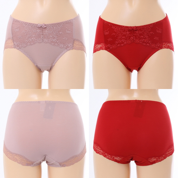 위생적이고 신축성이 좋은 면스판 소재와 여성스런 레이스를 사용한 레이스 힙팬티로