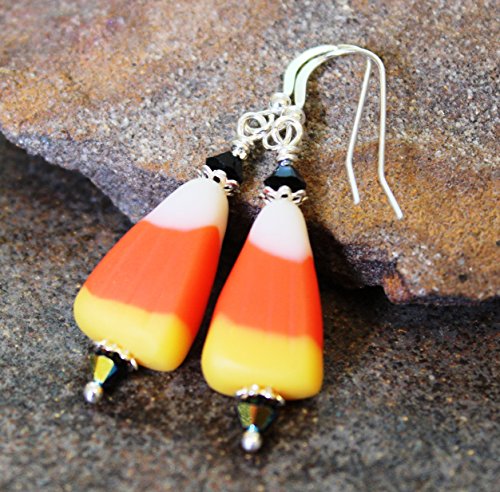 -. Title : Candy Corn Halloween Earrings, Sterling Silver
