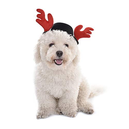-. Title : Pet Cat Dog Christmas Costume Pet Red Antlers Hat Christmas Fancy Dress Up Headwear with Hairpin Inside for General Dogs Cats
