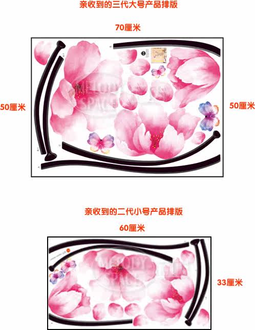 Large size: typesetting size is 50 × 70CM three flowers dimensions are as follows: about 36 × 22CM・ about 29 × 21CM・ about 20 × 19CM renderings two flower stems per plant collage maximum height of about 120CM