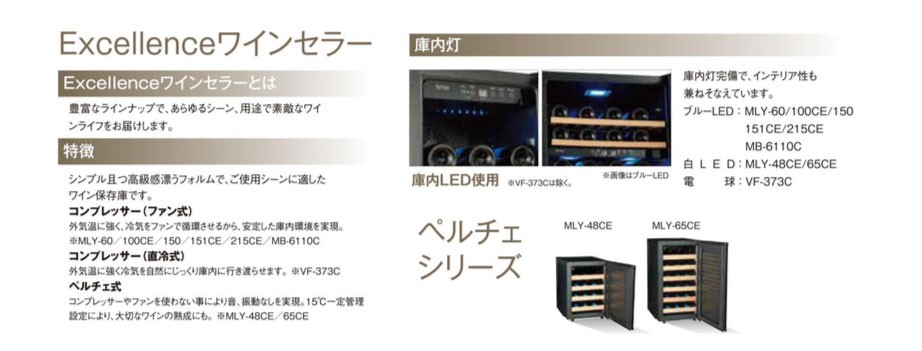 優れた冷却能力!省エネ機能が大幅にUP!MLY-48CE自動温度制御約15℃(固定)低騒音・低振動庫内LEDランプ搭載コンパクト設計定格内容積:48L収納本数:12本定格電圧:100V定格電流:63W年間消費電力量:50Hz:126Kwh/年、60Hz:126Kwh/年ペルチェ式ノンフロン棚数:4枚保証期間:本体1年、冷却機1年本体サイズ:幅385×奥行575×高さ515mm本体重量:15.0Kg