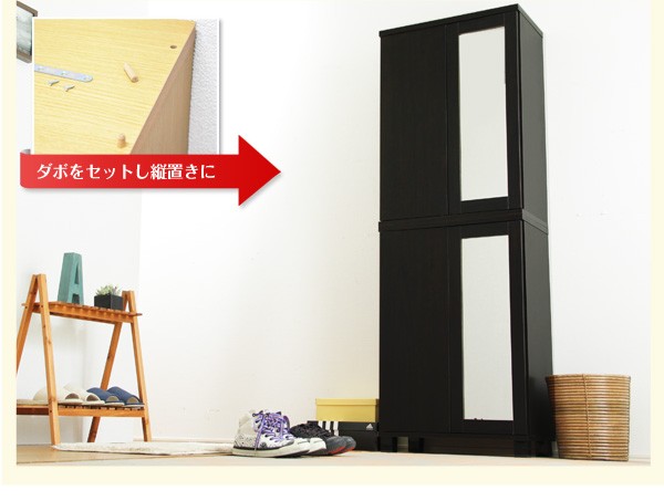 【商品について】[サイズ]■外寸:幅60cm×奥34cm×高さ90cm(2台積み重ね時174cm)■内寸:幅55cm×奥29.5cm×高さ79.5cm■~サイズ28.0までの靴を収納できます。(靴のメーカーによって異なります)■材質:パーチクルボード、中密度繊維板(MDF)、プリント紙化粧合板■その他:お客様組立品■カラー:ダークブラウン・ナチュラル・ホワイト■生産国:中国 ※メーカー直送品、商品代引き不可