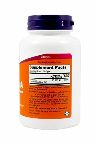 Now Foods Vitamin A, 25000 IU from Fish liver oil, 500 Soft-gels