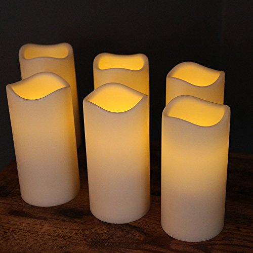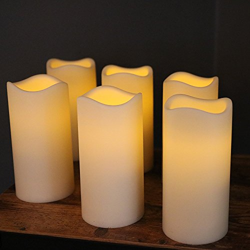 NEW Set of 6 Outdoor 3x6 Waterproof Resin Candles with Timer and Remote and C Batteries Included