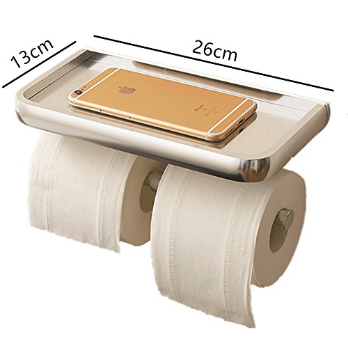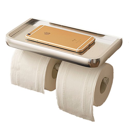 Aluminum Bathroom Toilet Paper Tissue Holder with Mobile Phone Storage Shelf