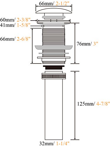 Copper/Brass Sink Pop up Drain Stopper without Overflow for Bathroom Faucet Vessel Vanity, Polished Chrome