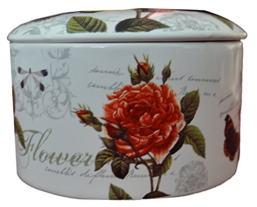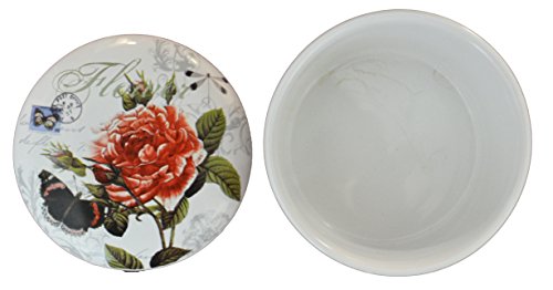 Jewelry Ceramic Trinket Box Purple Flower Butterflies Pattern (Red Flower (Circle))