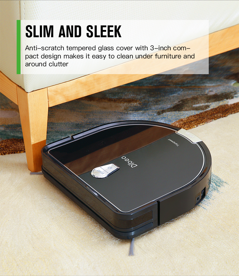 Dibea D960 is specifically designed to vacuum where dirt and dust hide. Combines with an advanced brushless motor, a roller brush, 2 side brushes and 1200pa powerful suction, it loosens, lifts, and vacuums dirt, dust, pet hair and even large debris like cereal from your floors.