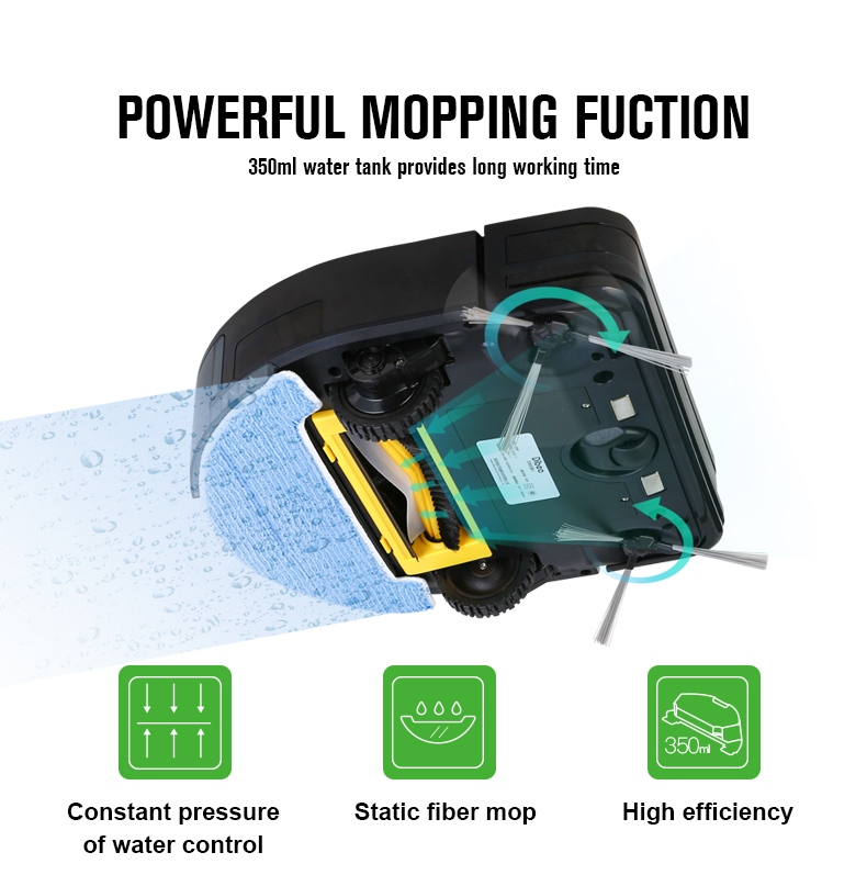 Planned "S" Path is a Creative Cleaning Mode for Higher Coverage with Less Movements Steel Mirror Surface Looks Royal Noble Standard for the People Puesue High Quality Life. 1200Pa Strong Suction Makes Sure Dust Suction Easily and Sufficiently at Anytime. Wet Mopping With 300ml Big Water Tank Plus its Meantime Sweeping is Barely Clean. Imported Brushless Motor at Low Sound 45db Leaves You a Clean but Peaceful Home. 2600mAh Big Battery Works for super long duration Undoubtfully Leading the Trend