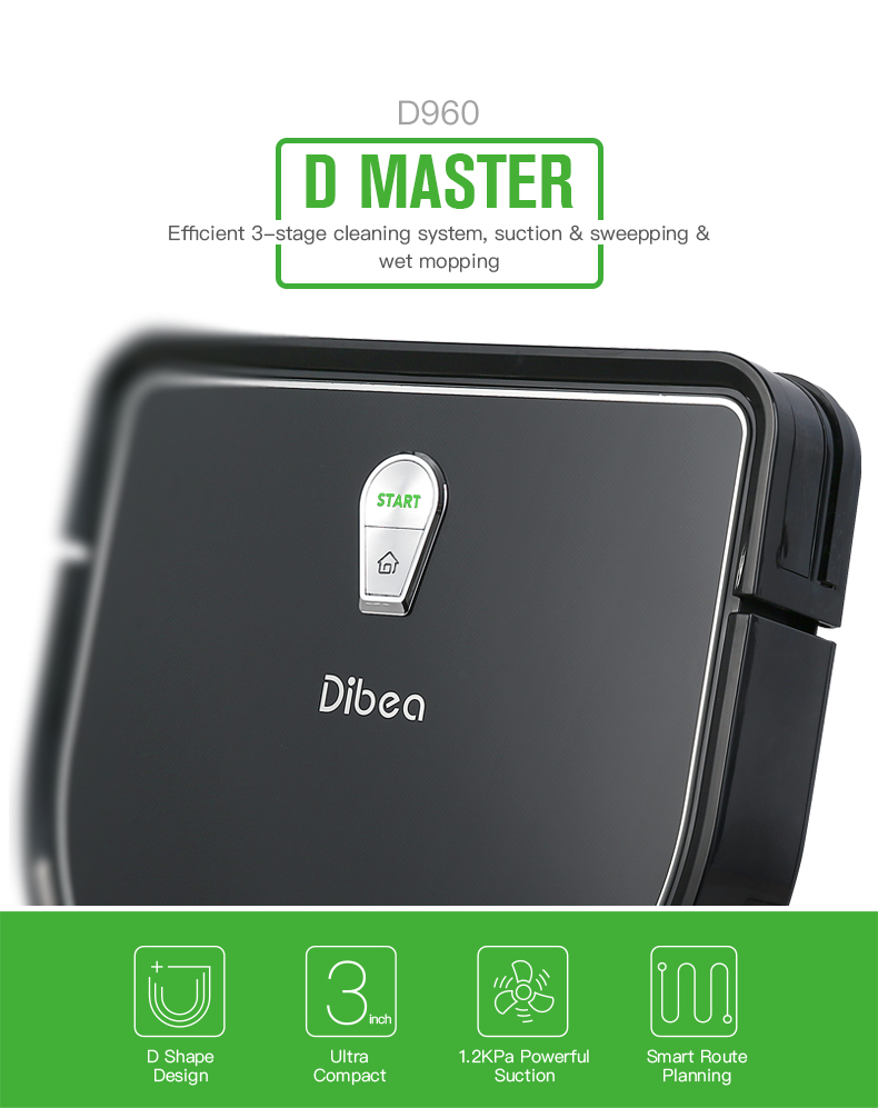 Dibea D960 D-MASTER High Performance Robot Vacuum Cleaner for Hardwood Floors and Carpets