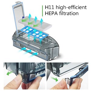 D960 uses a professional H11-grade HEPA filter to deal with the fine dust and reduce mites effectively, perfect for home with pets, young children or sensitive nose.