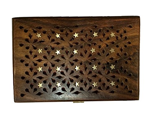 Valentine Day Special Present, Wooden Jewelry Box, Brass Inlay Star Design, Wooden Vintage Box, Keepsake Storage Box, Trinket Box, Brown Color Size 7 X 5 Inch