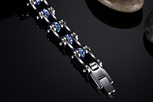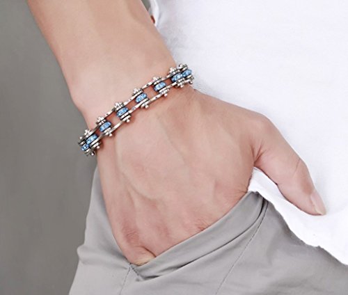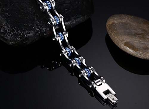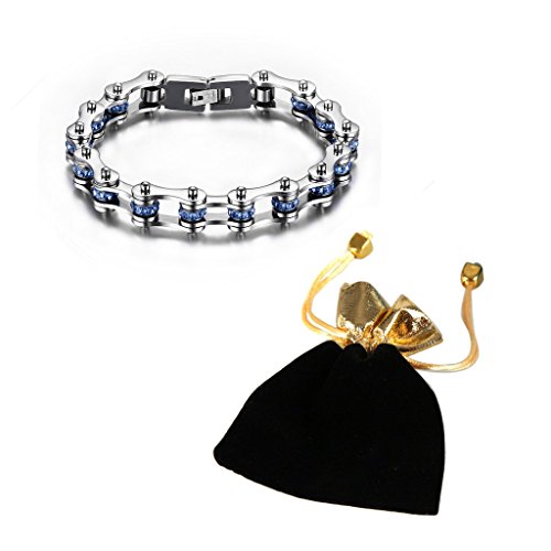 -. Binding : Jewelry -. Brand : Rainso -. Department : womens -. Feature : COLOR: Silver & Blue / ESPECIALLY: Superior 316L stainless steel material, delicate polishing and long colorfast / SIZE: Length:23.3cm; Width:1cm, Weight: 0.05-0.06kg/pcs / HIGHLIGHT: Men Motorcycle Bike Chain Bracelet with blue rhinestones, cool stylish and fashion design / MORE: Each one with a black gift bag, it is a cool gift for your or your friends -. Label : Rainso Fashion Products -. Manufacturer : Rainso Fashion Products -. Model : JEWAM312-US -. MPN : JEWAM312-US -. PartNumber : JEWAM312-US -. ProductGroup : Jewelry -. ProductTypeName : FASHIONNECKLACEBRACELETANKLET -. Publisher : Rainso Fashion Products -. Size : One Size -. Studio : Rainso Fashion Products -. Title : Rainso 316L Stainless Steel Silver Motocycle Chain Bracelet with Blue Shiny Rhinestones in Gift Bag